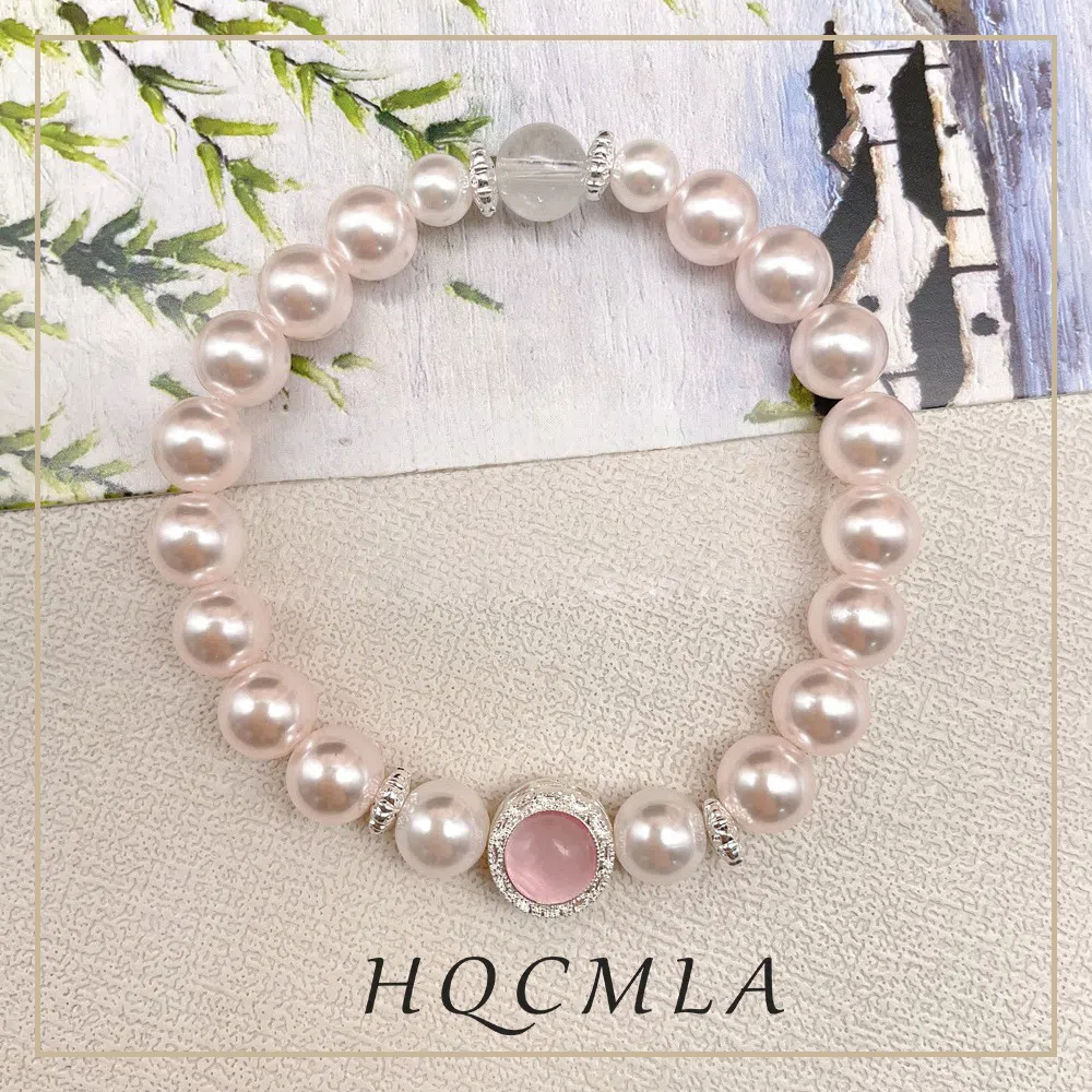 Pink chalcedony is round Shijia pearl temperament bracelet