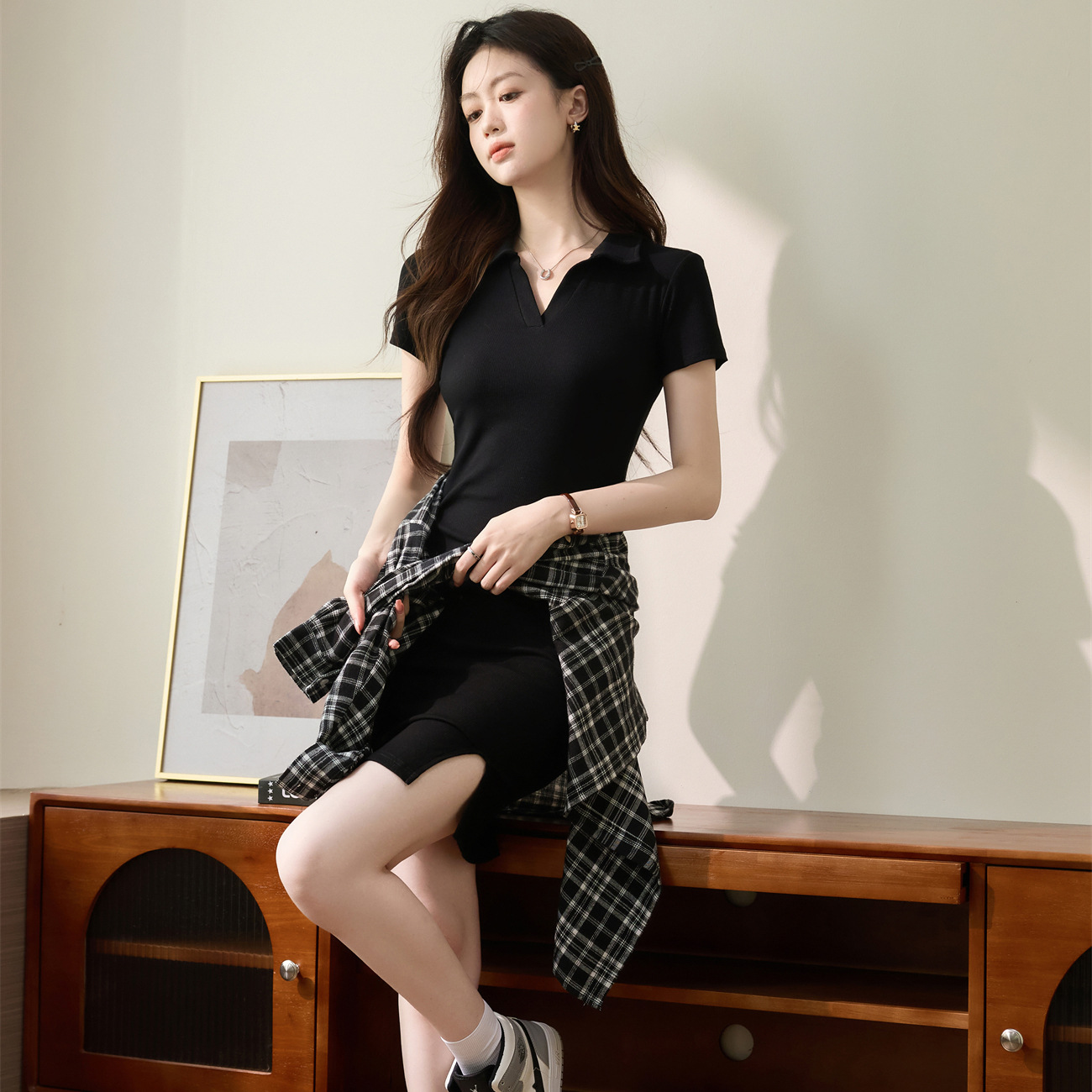 Cinched waist slim new Chinese style buckle stand-up collar shirt dress