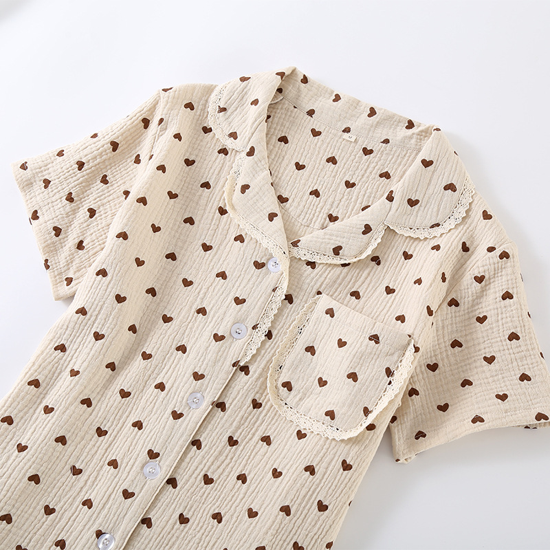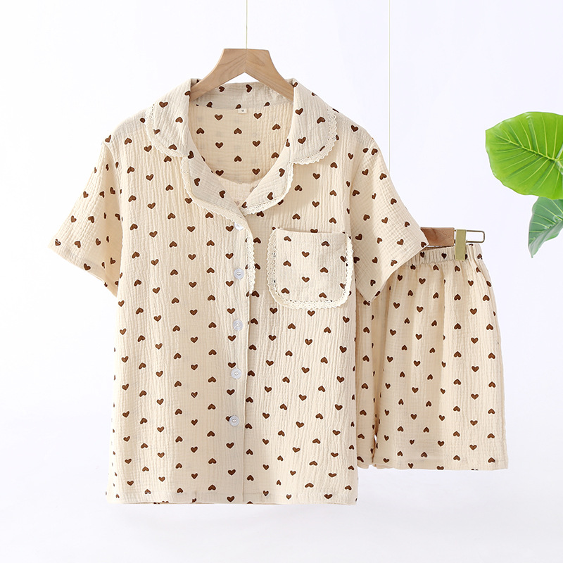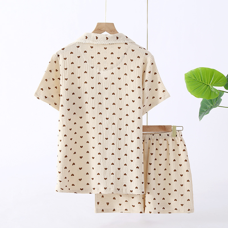 Simple love cotton comfortable short-sleeved shorts pajama set