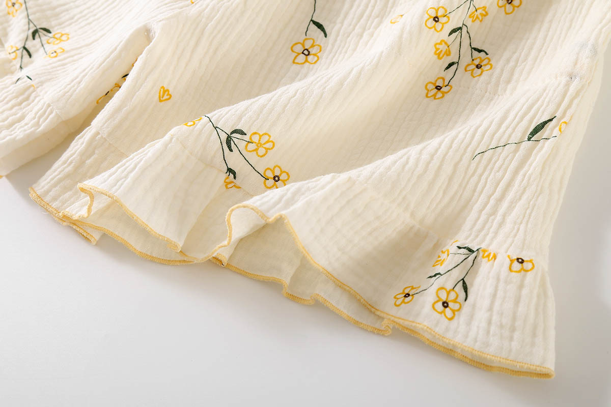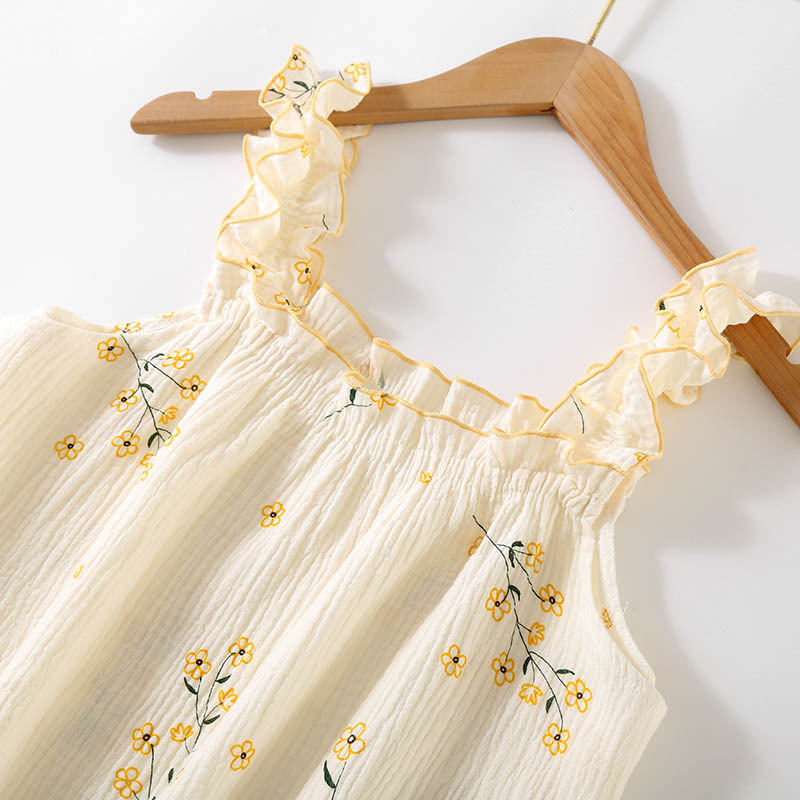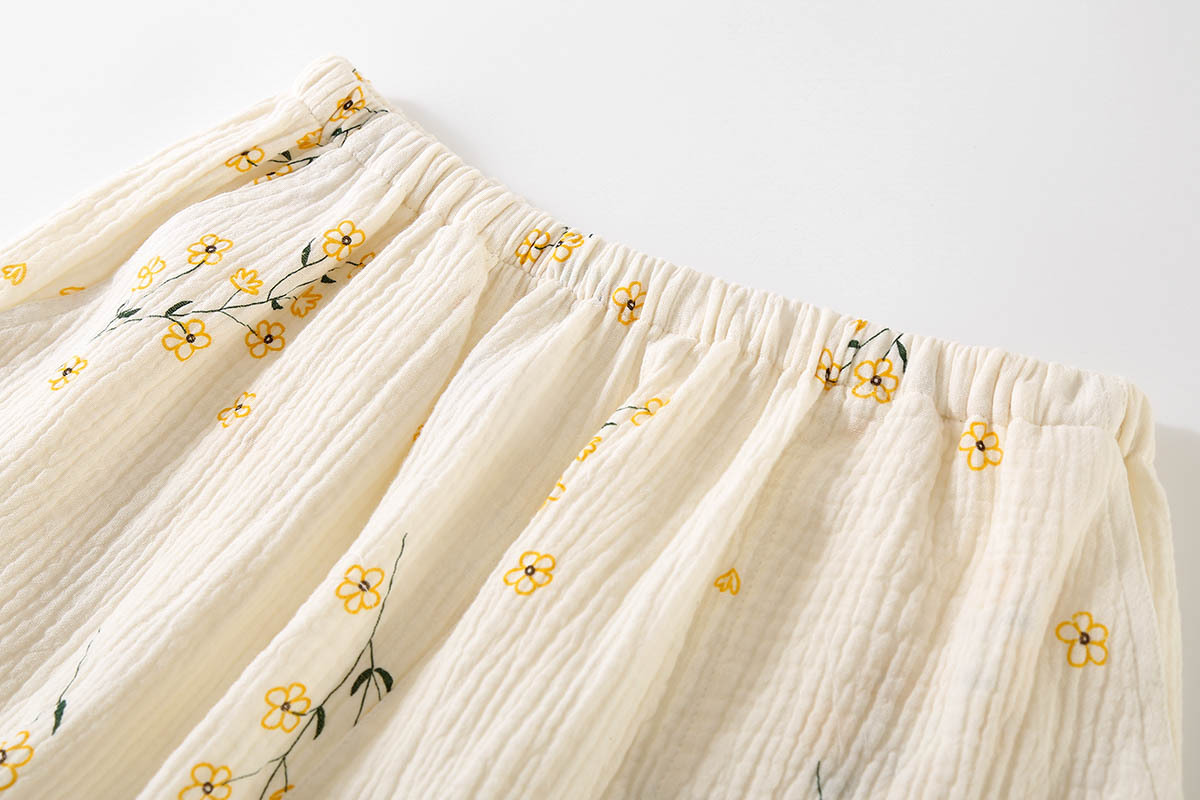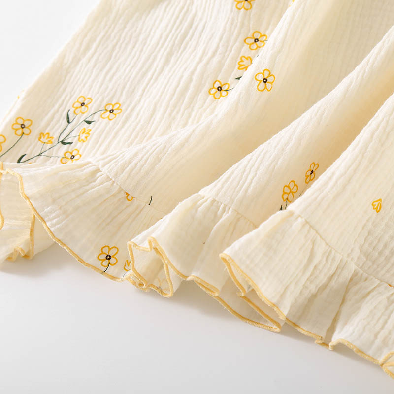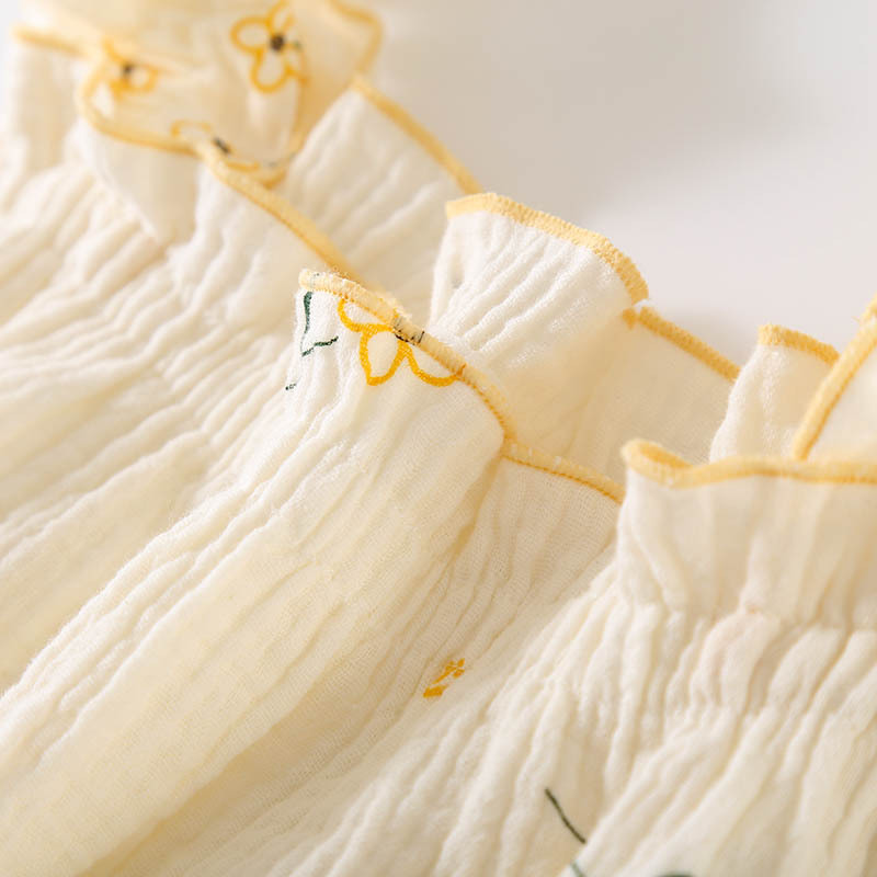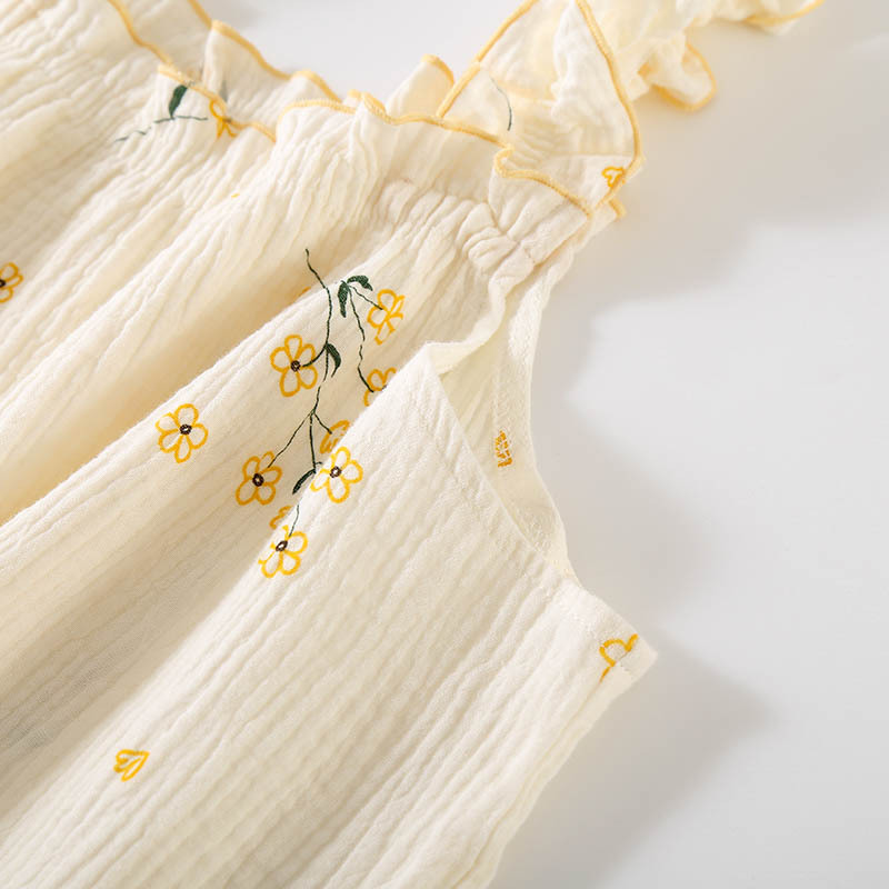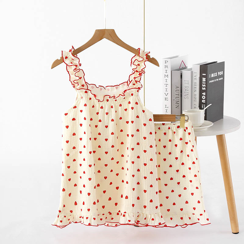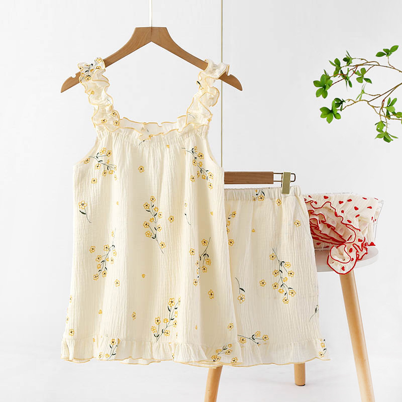 Cotton sweet and fresh fungus edge suspender shorts pajama set