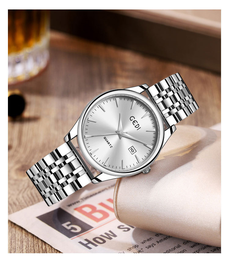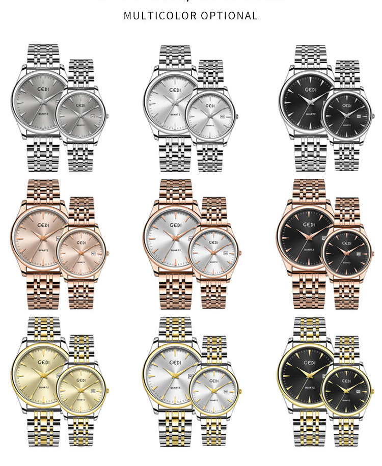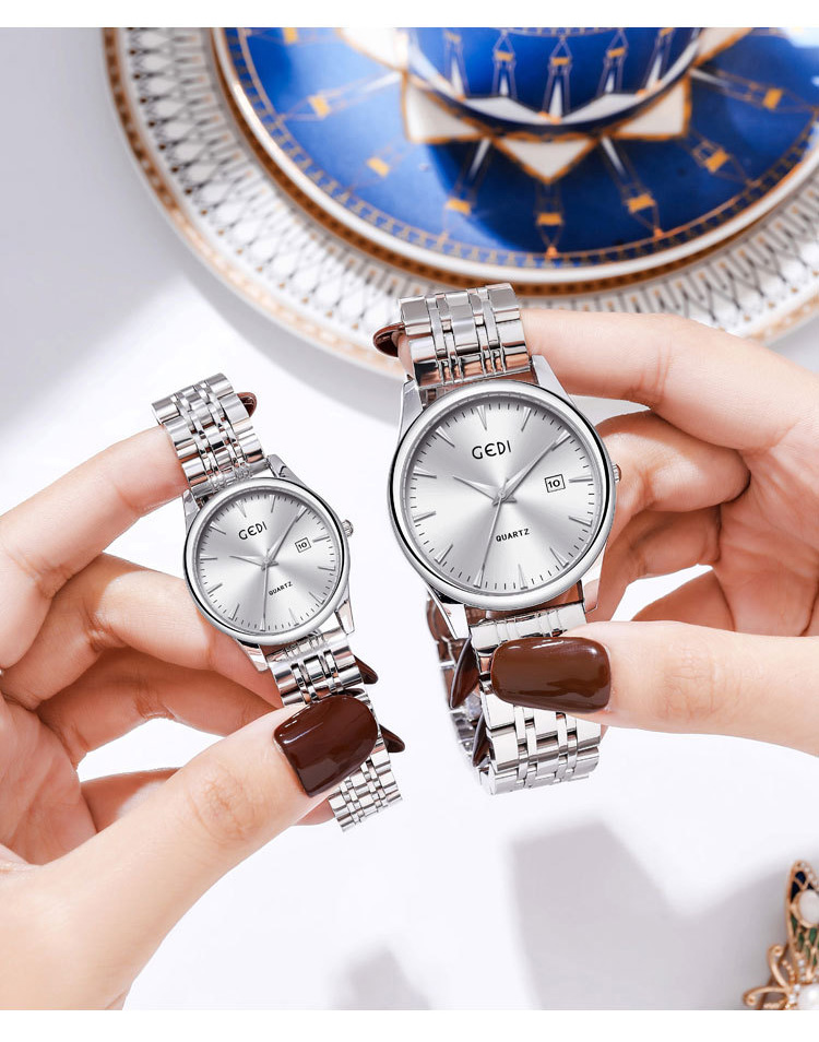Classic Steel Band Date Waterproof Quartz Couple Watch