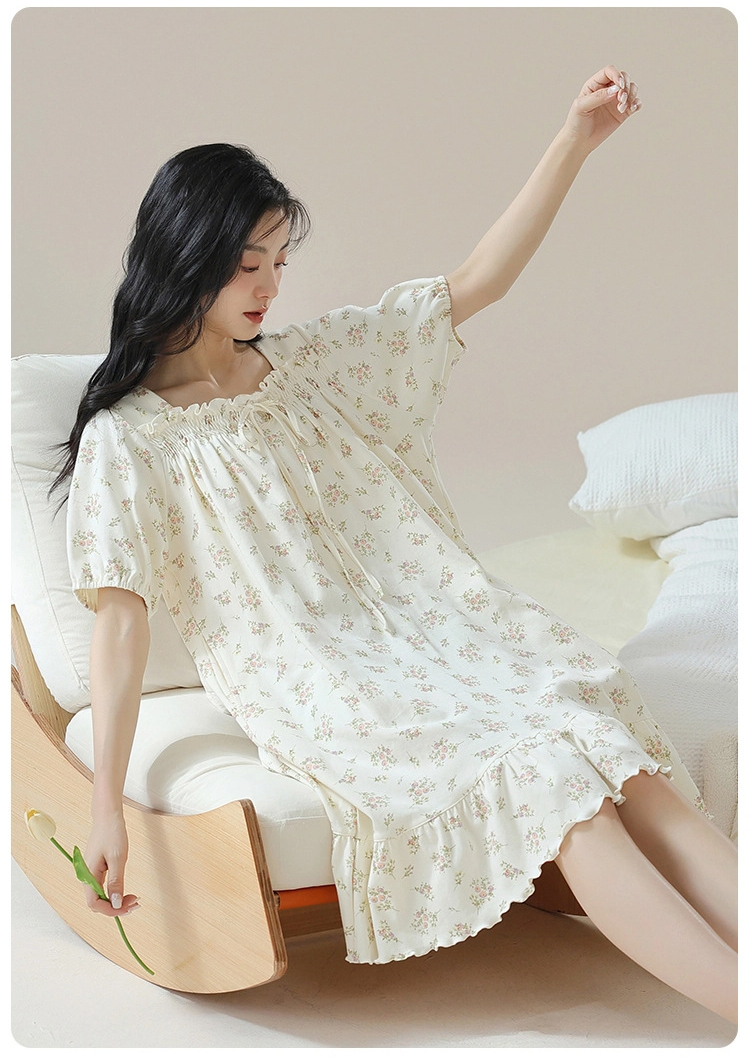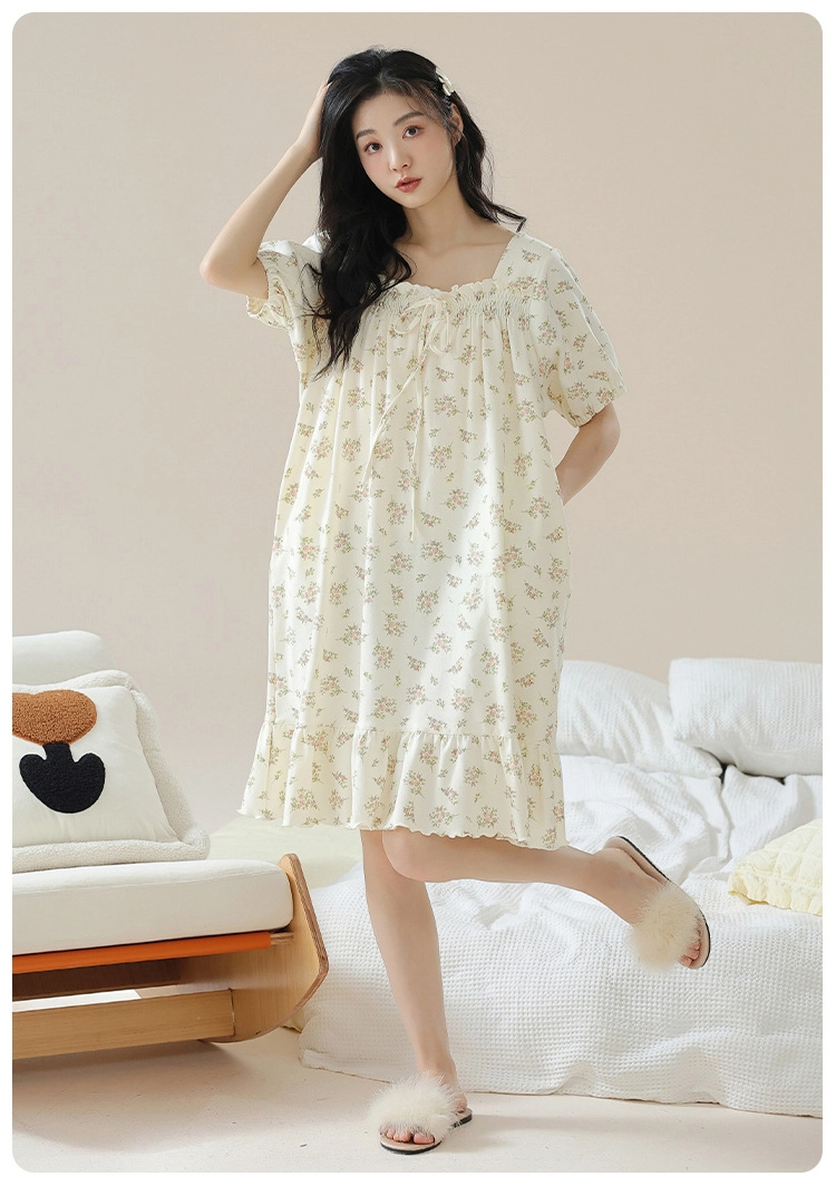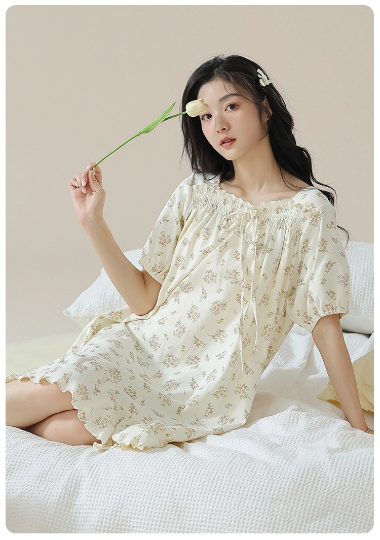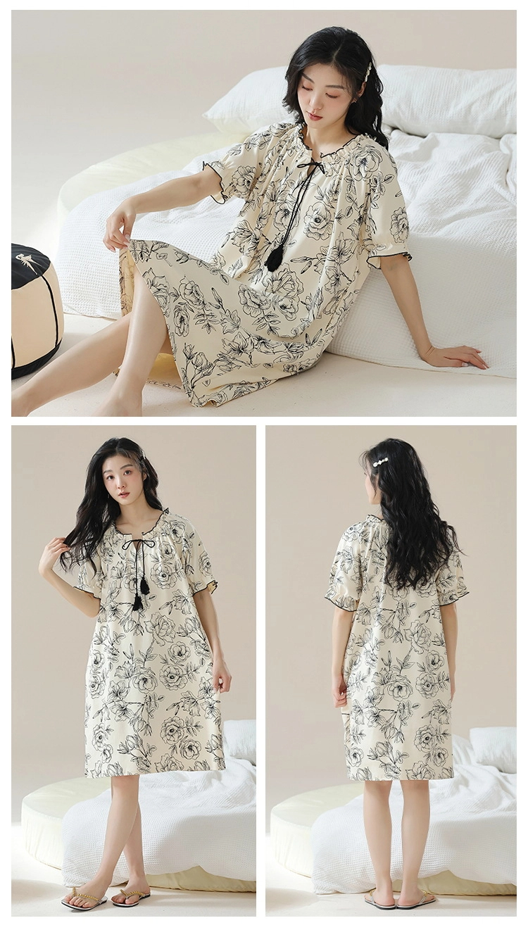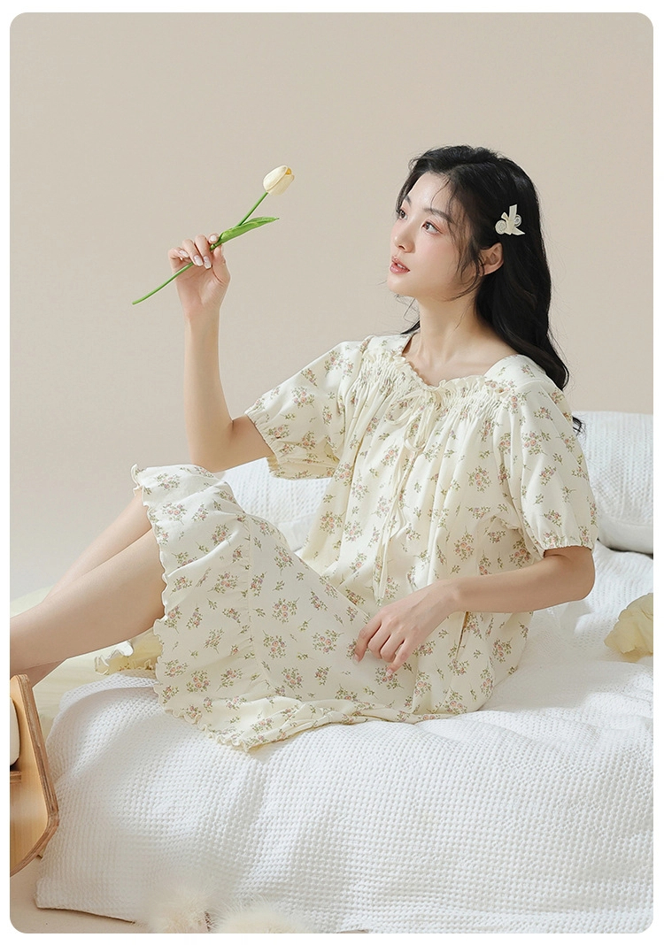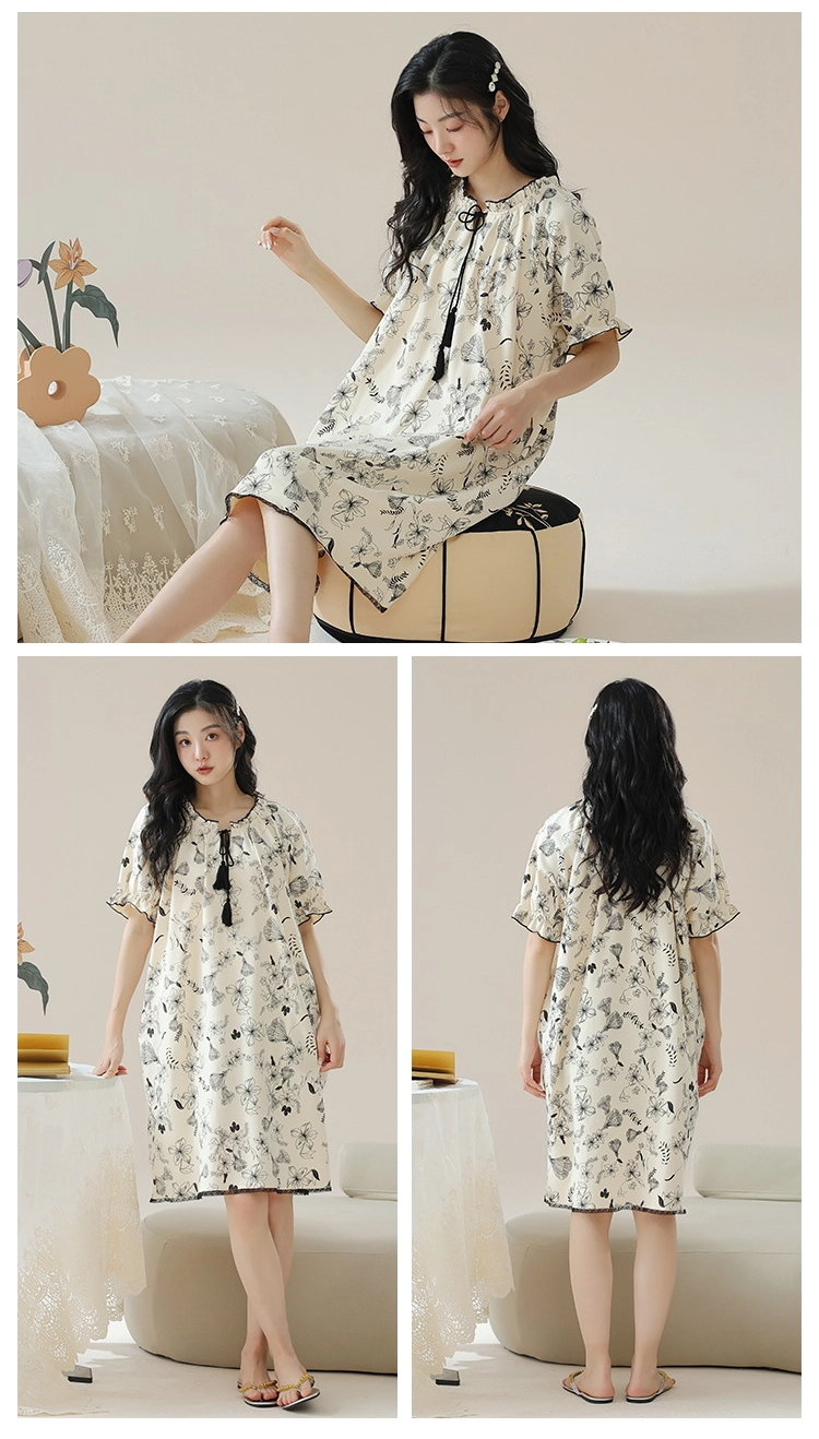 Pure cotton short-sleeved pure retro style nightdress