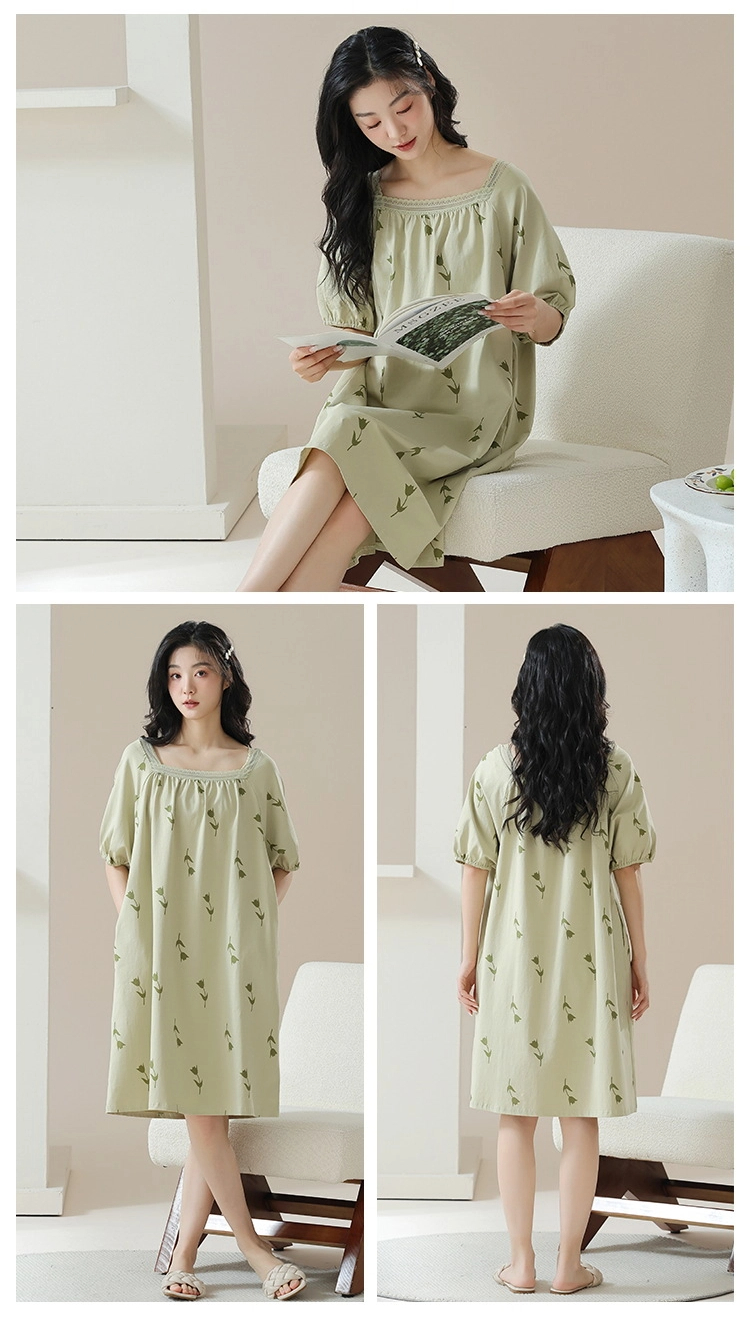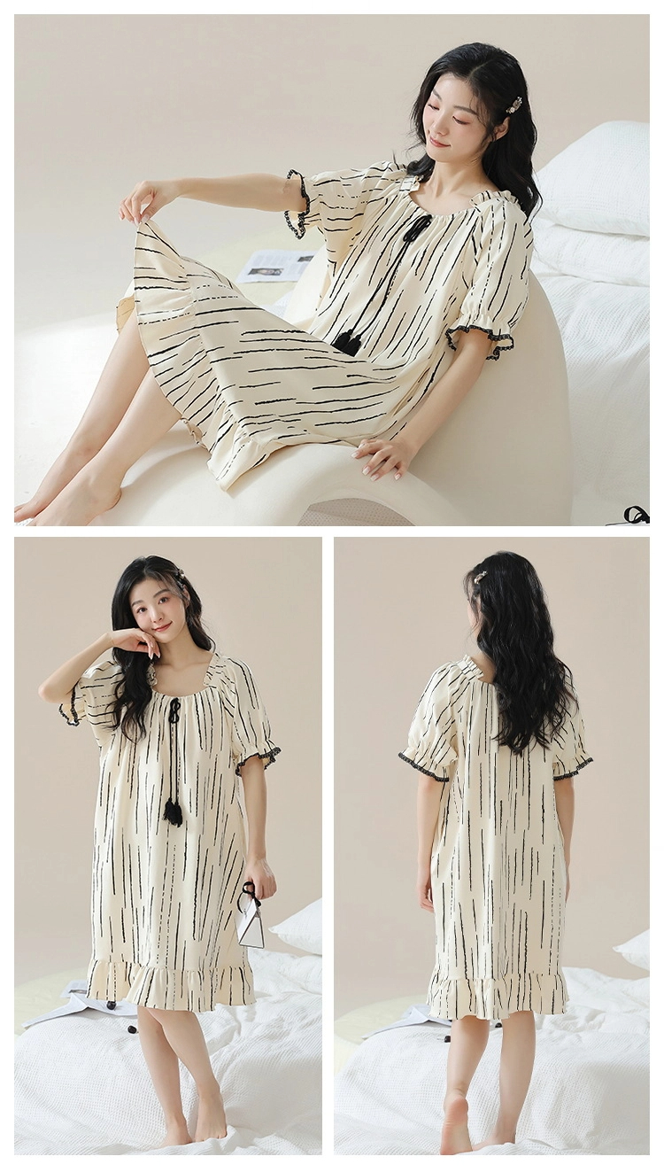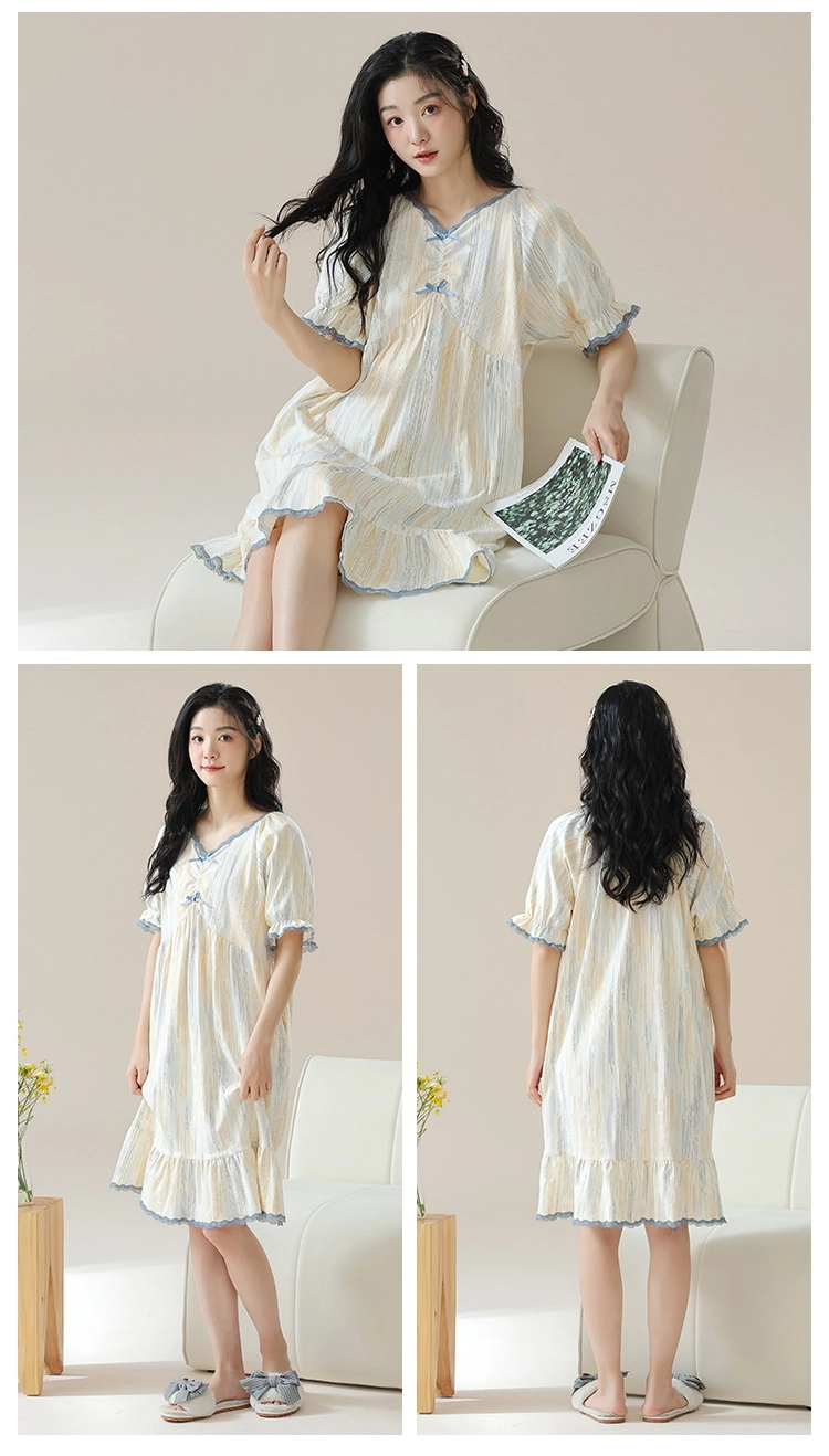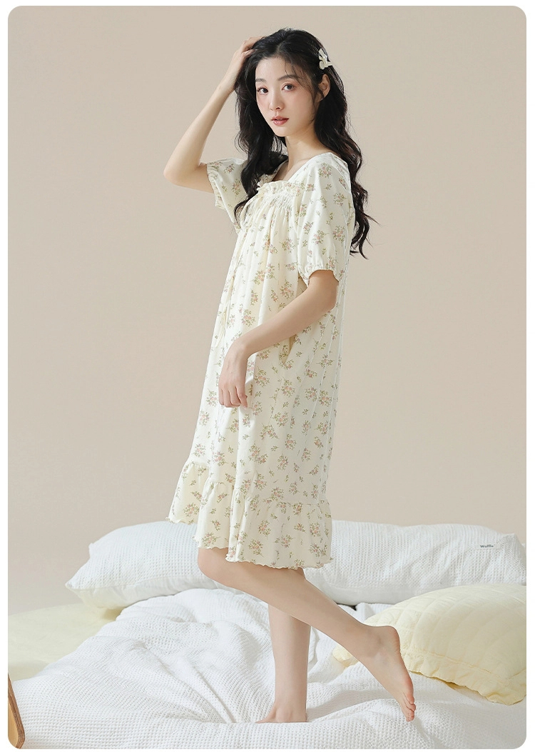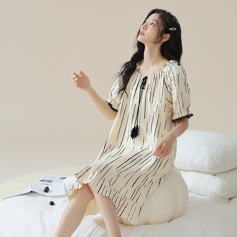 Pure cotton short-sleeved pure retro style nightdress