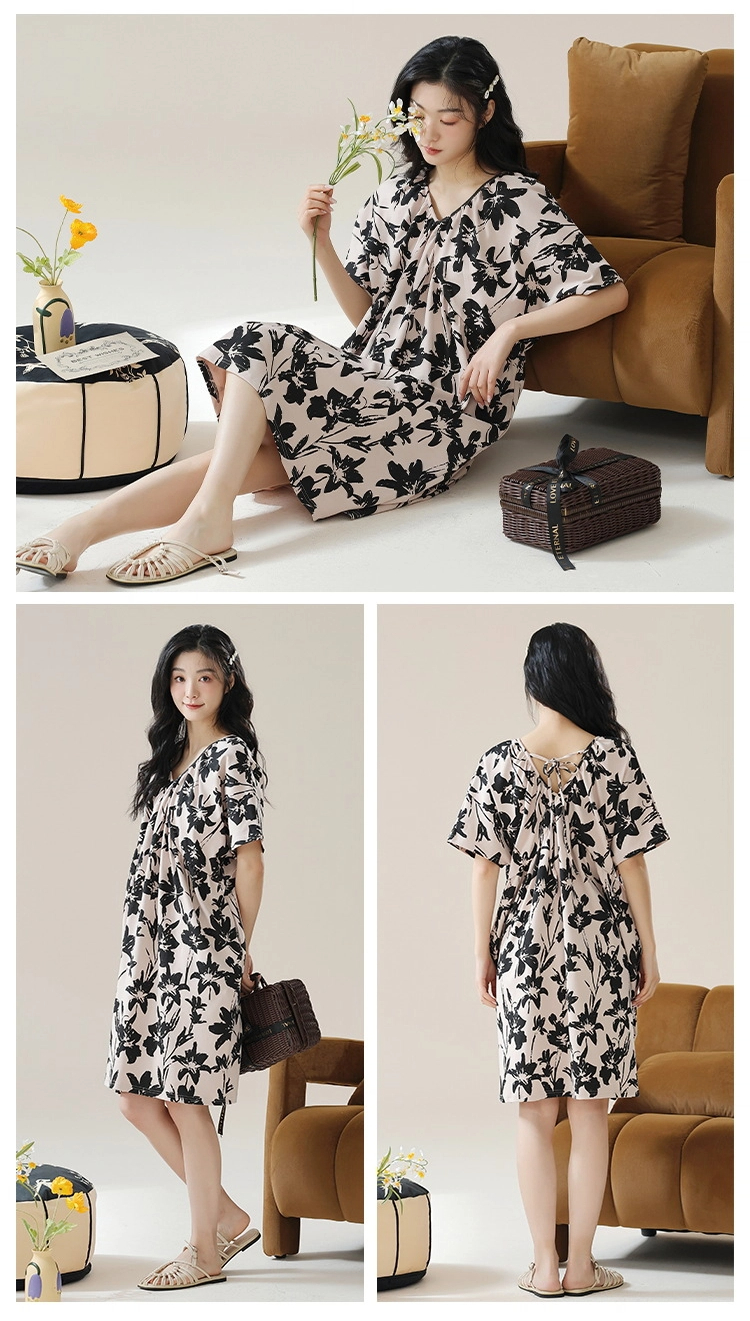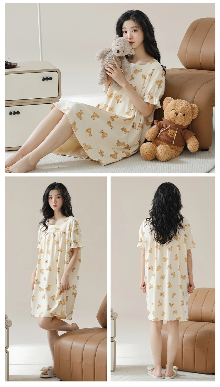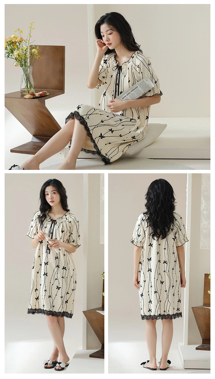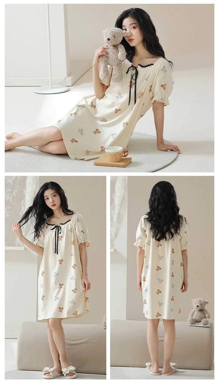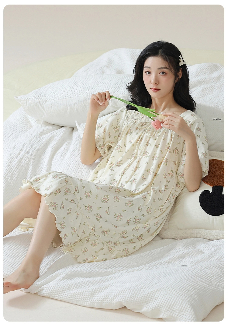 Pure cotton short-sleeved pure retro style nightdress