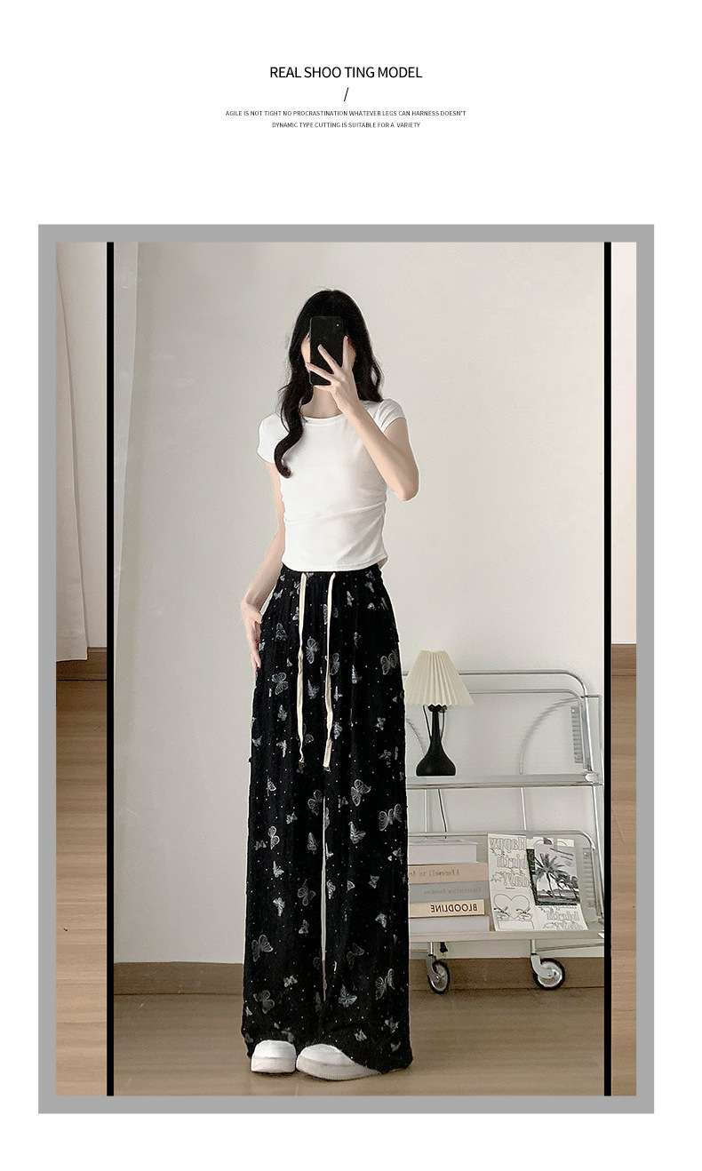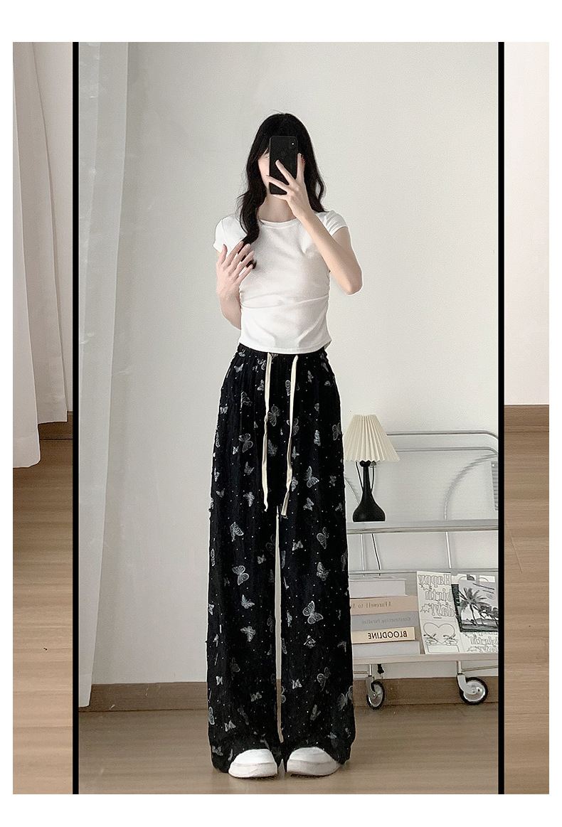 Butterfly ripped wide-leg pants