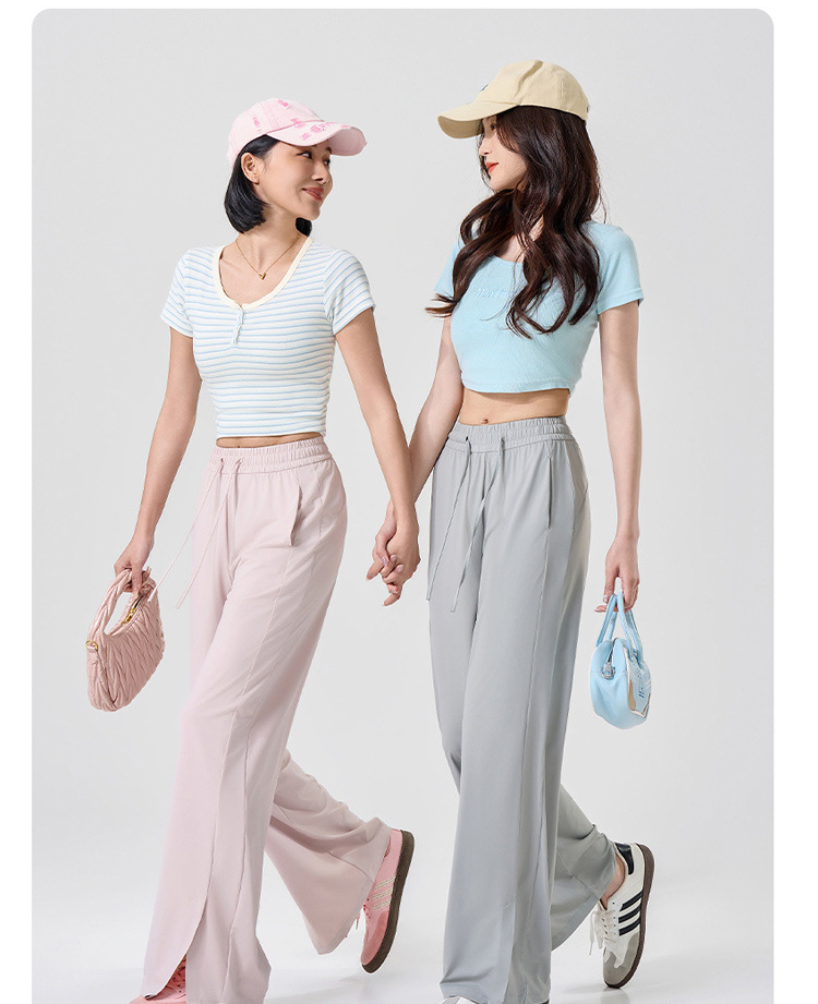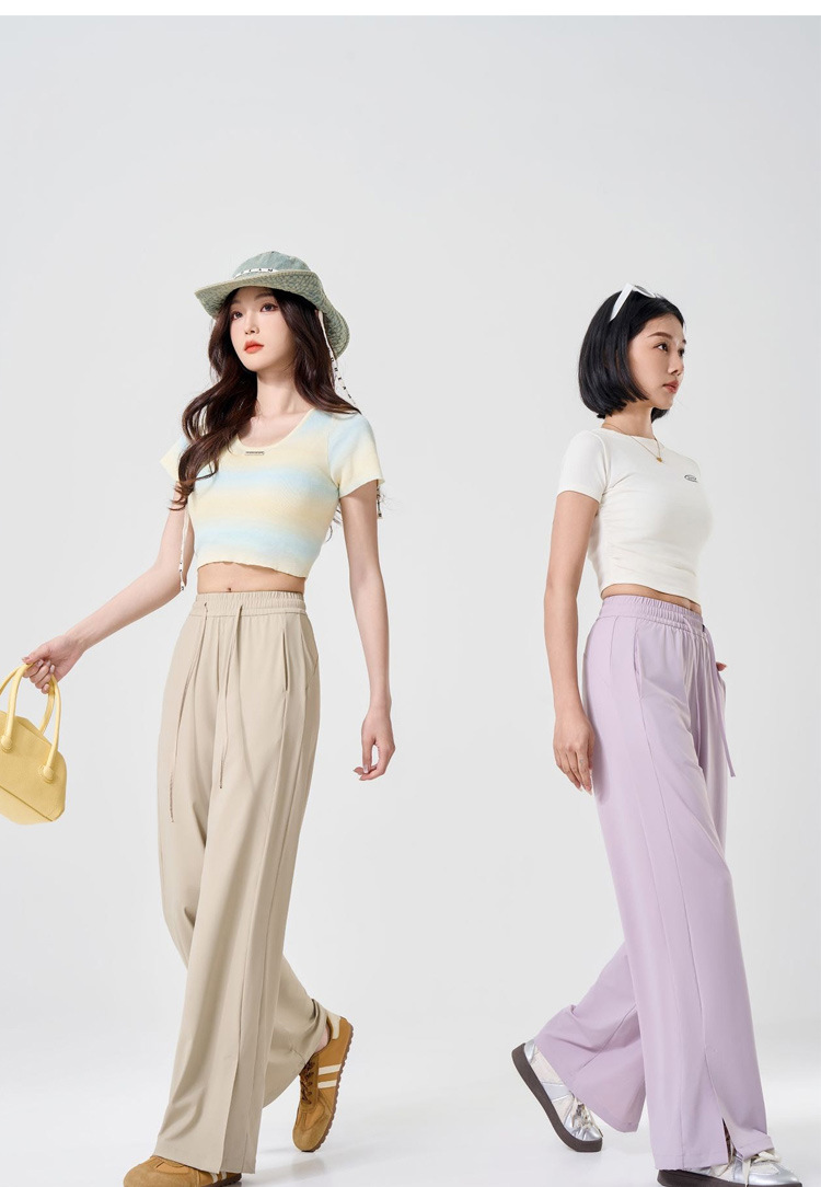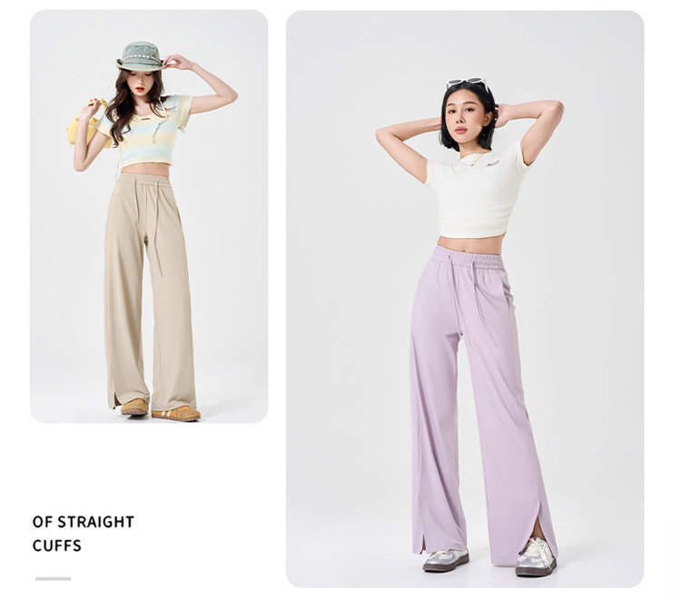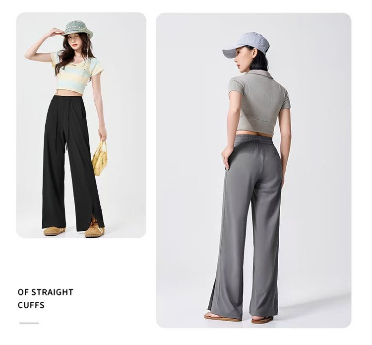 Thin, Loose-fitting slit high-stretch ice silk sunscreen pants